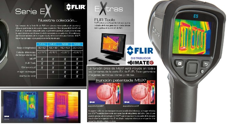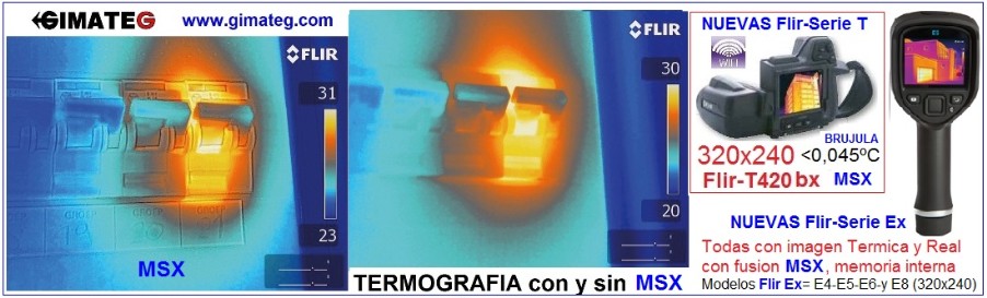 - FLIR SERIE Ex- NOVEDAD 10/2013 = TODAS con Fusion MSX imagen Termica y Real, Memoria interna , USB ,Bateria Litio,pantalla TFT Color , Modelos= desde E4 por 995 Eur , E5- E6con Alarmas y E8 con ademas alta resolucion 320x240